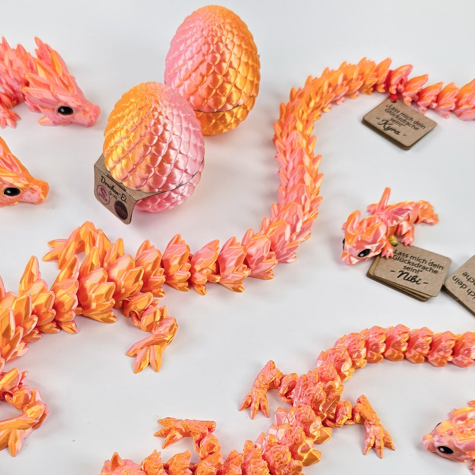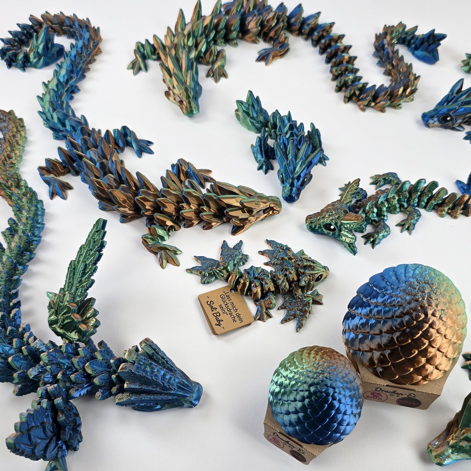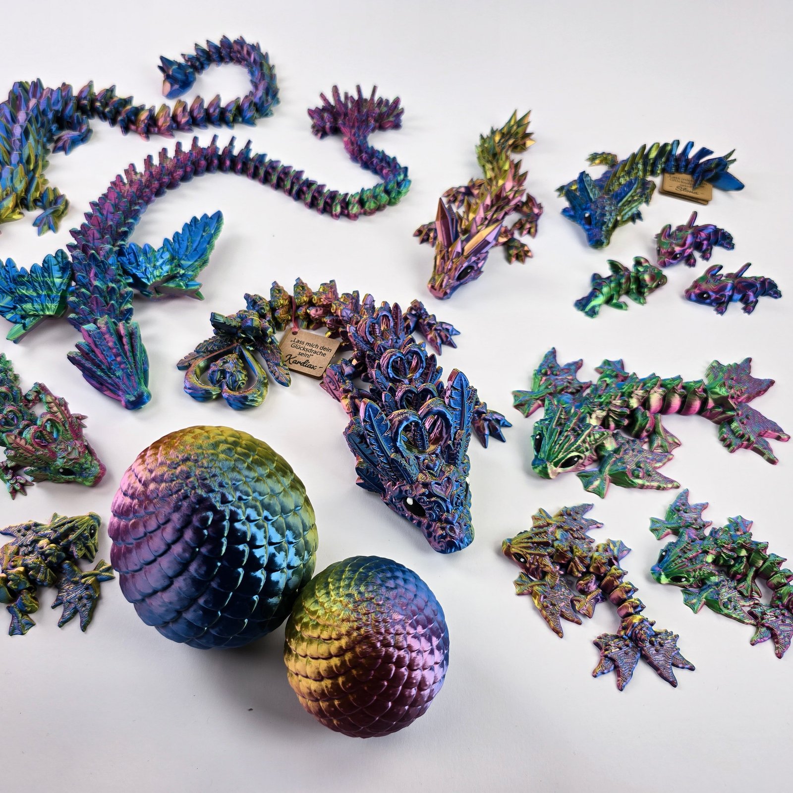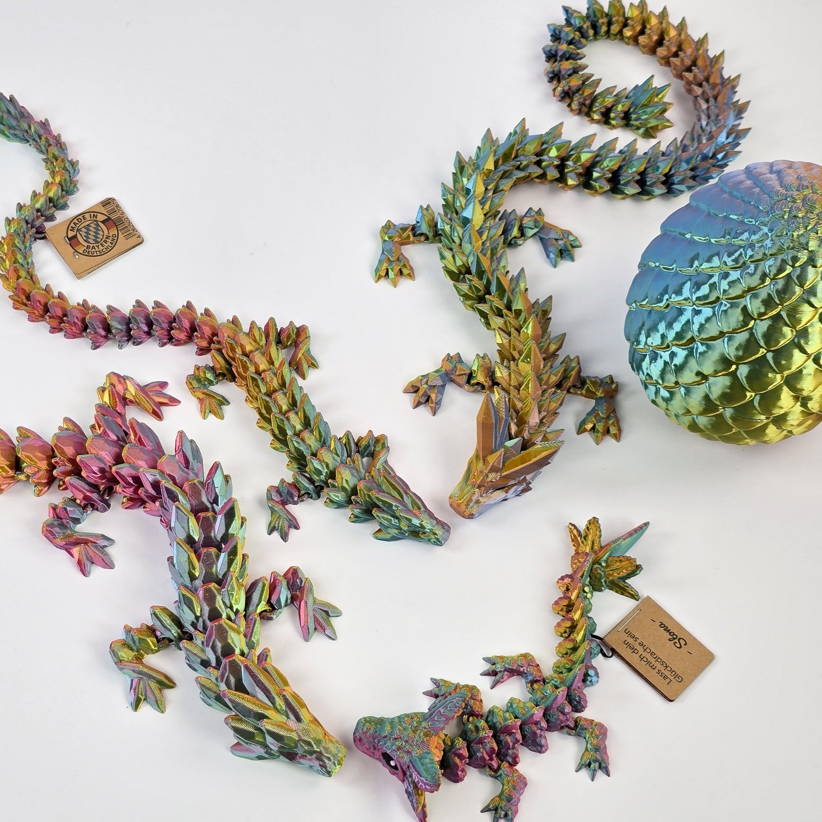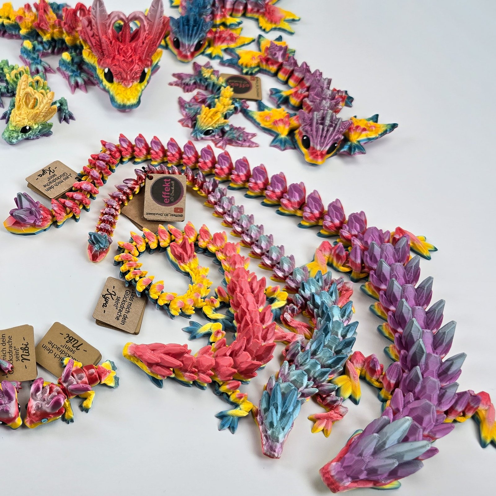- Besonders bei Verlaufsfarben (z. B. Regenbogen) ist jedes Modell ein echtes Unikat – kein Drache gleicht dem anderen.